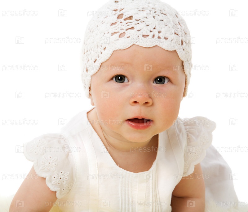Портрет полугодовалой девочки на белом фоне