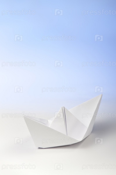 Бумажный кораблик на бело-голубом фоне