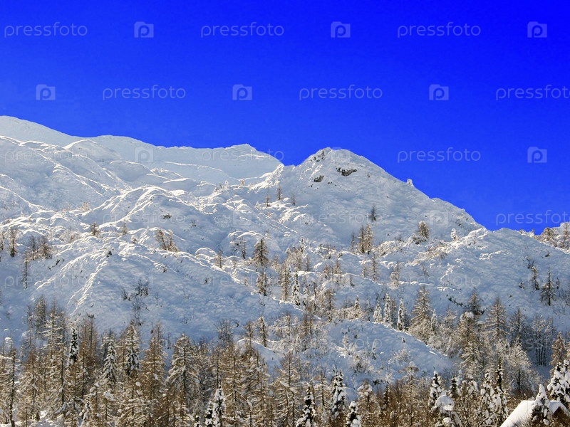 Горный пейзаж. Горнолыжный курорт Бовец. Словения