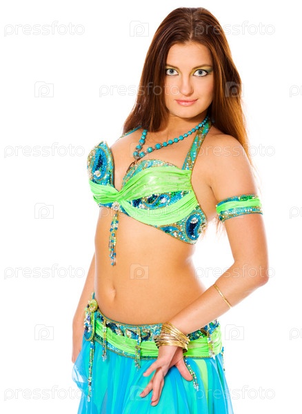 Красивая молодая танцовщица исполняет танец живота