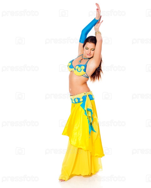 Красивая молодая танцовщица исполняет танец живота