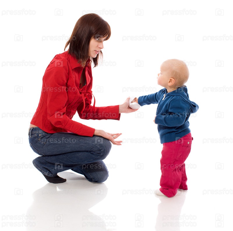 Мать с дочерью на белом фоне