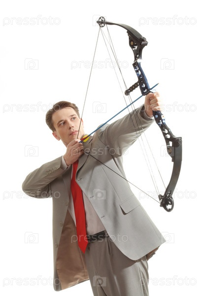 Деловой человек стреляет из лука