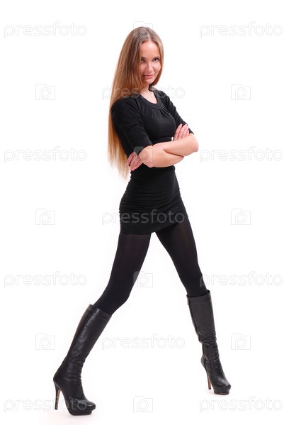 Стройная девушка на белом фоне