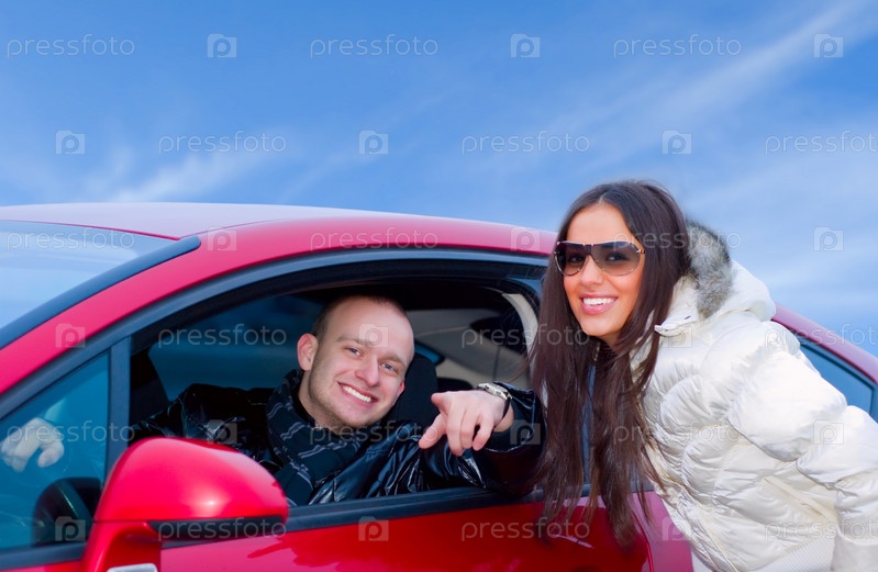 Счастливая пара у автомобиля