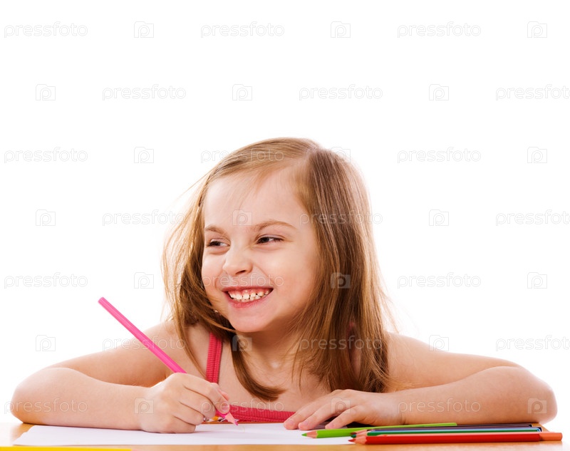 Маленькая девочка с цветными карандашами