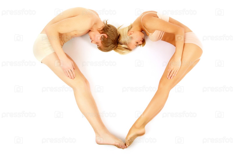 Молодая пара лежит в форме сердца