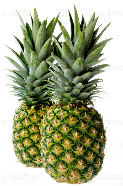 Спелые ананасы на белом фоне