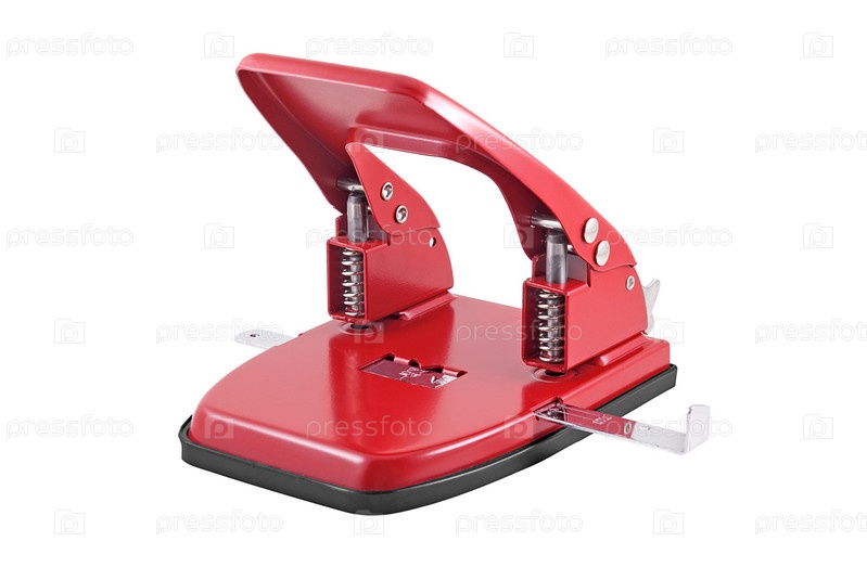 Красный дырокол на белом фоне