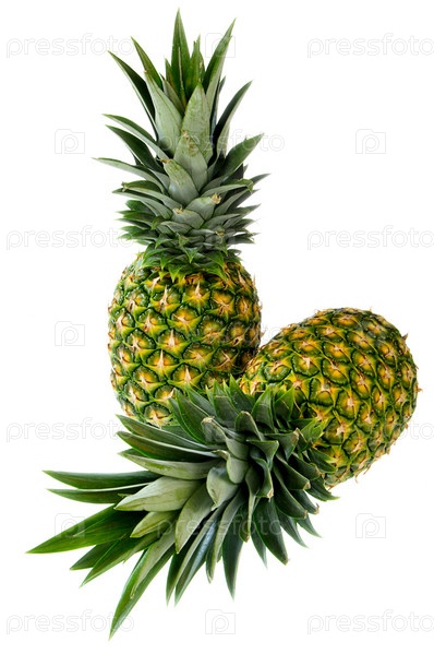 Спелые ананасы на белом фоне