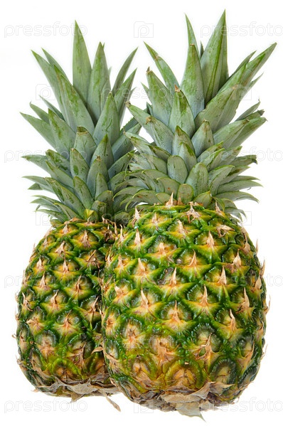 Спелые ананасы на белом фоне
