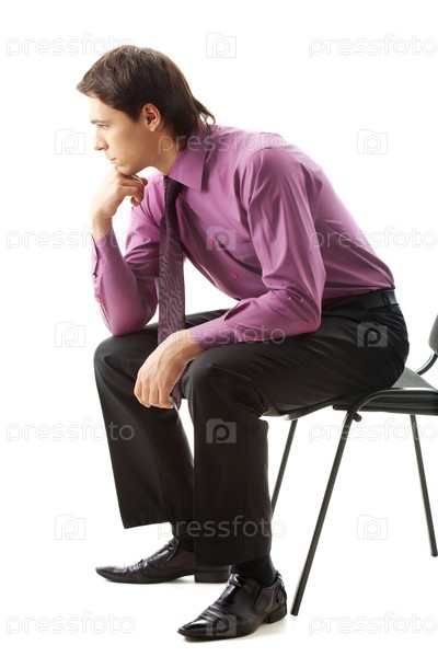 Задумчивый бизнесмен сидит на стуле