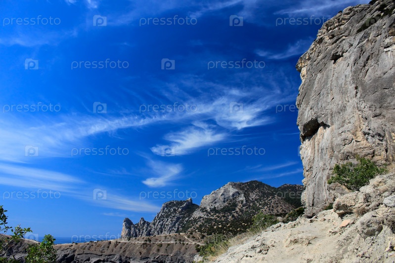 Серые скалы на фоне голубого неба