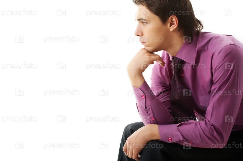 Задумчивый бизнесмен на белом фоне