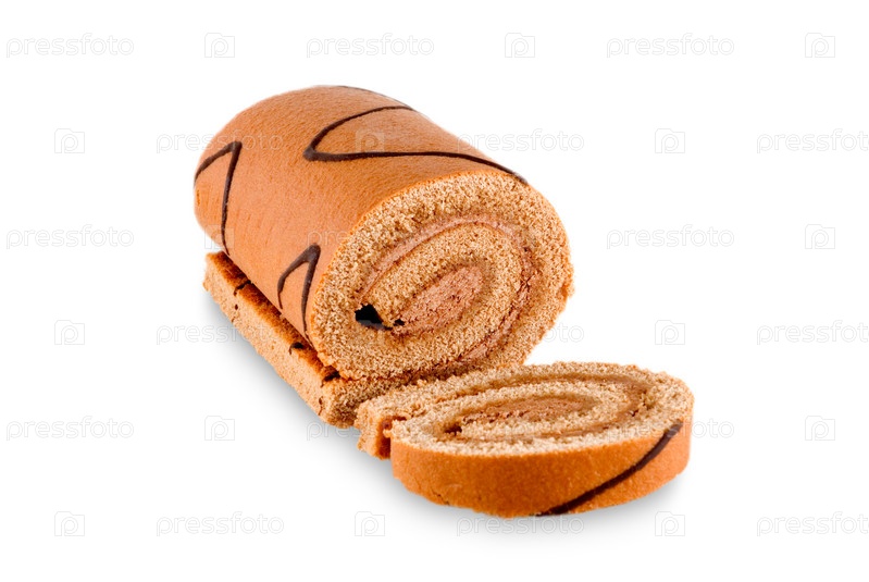 Коричневый медовый рулет на белом фоне