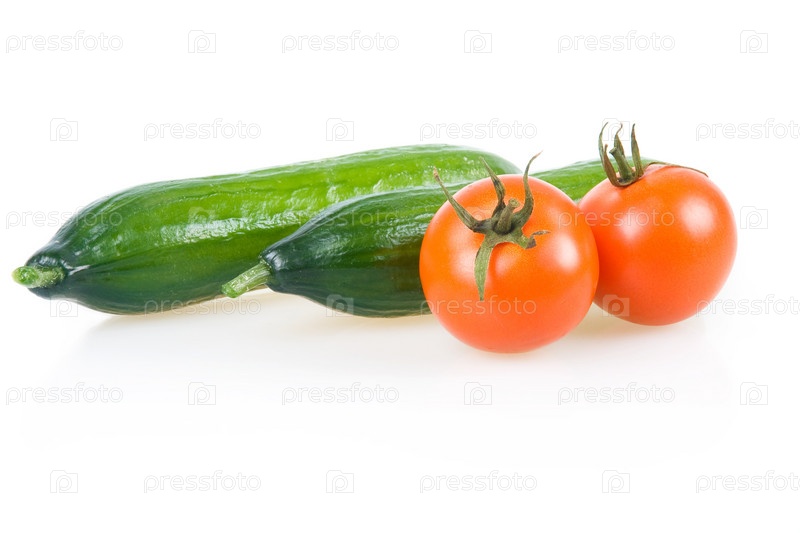 Спелые огурцы и помидоры