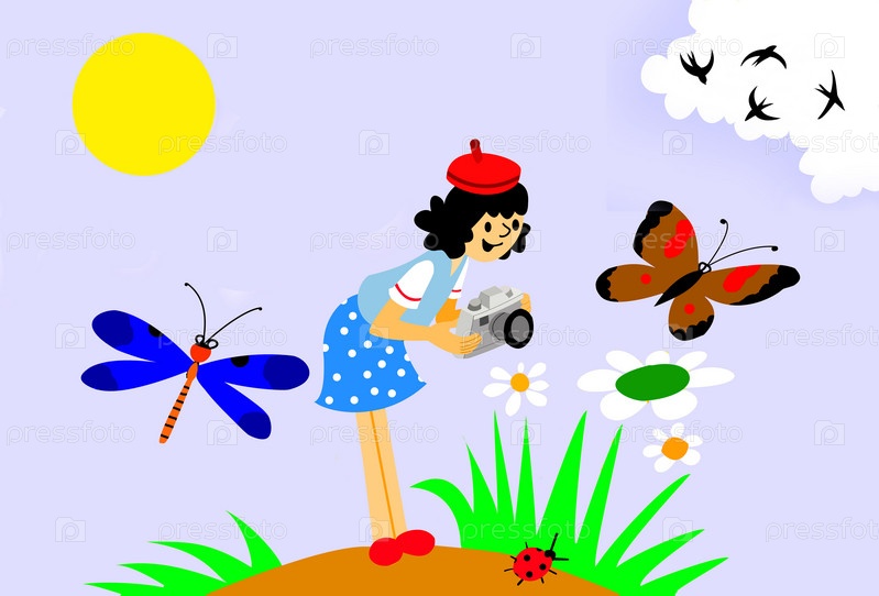 Девушка с камерой на лугу