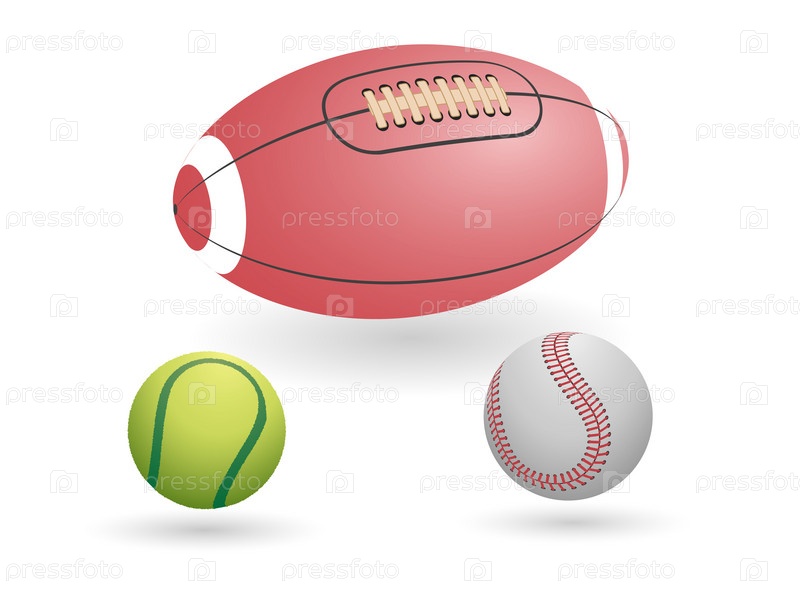 Мячи для игры в теннис, бейсбол и регби
