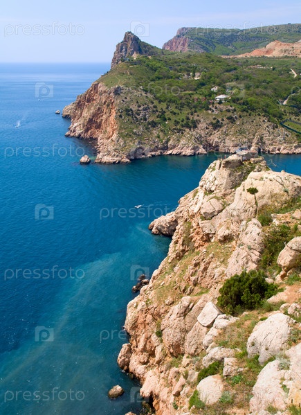 Прибрежные горы и синее море в Крыму летом