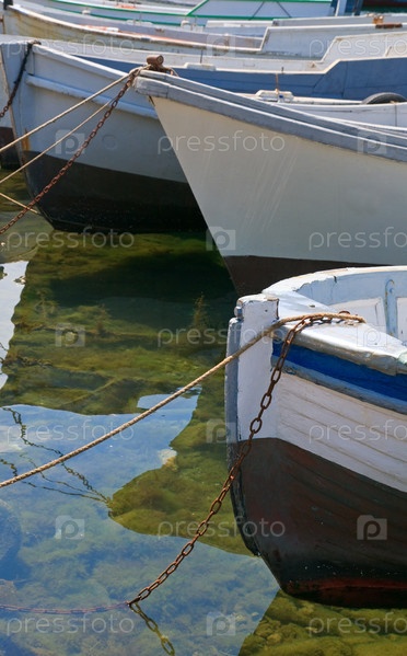 Лодки белого цвета стоят на пирсе в воде