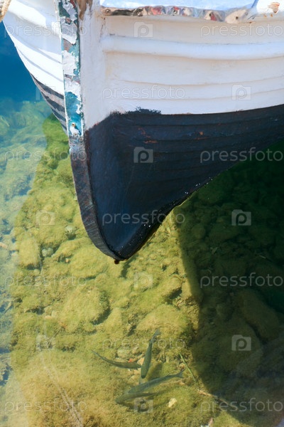 Носовая часть лодки черно-белой окраски в воде