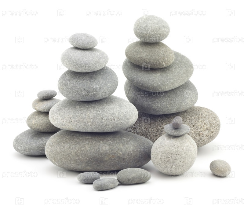 Пирамида плоских камней на белом фоне