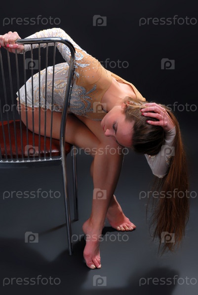 Гимнастка сидит на стуле