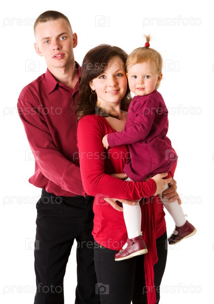 Семья из трех человек на белом фоне