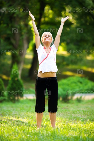 Девушка делает упражнения в парке