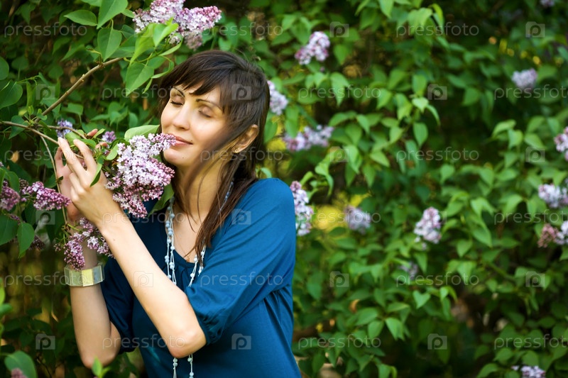 Девушка нюхает сирень