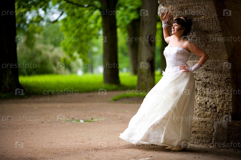 Невеста стоит в парке