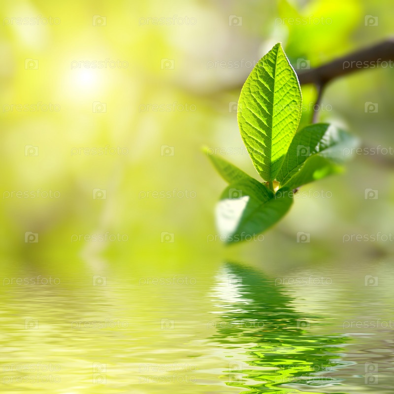 Зеленая ветка над поверхностью воды