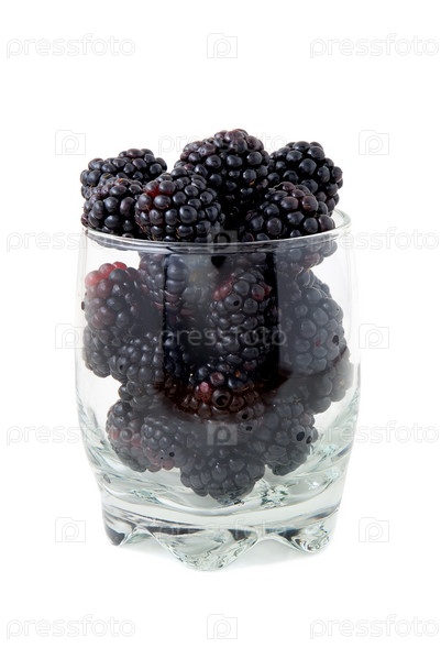 Стеклянный стакан, полный спелой ежевики
