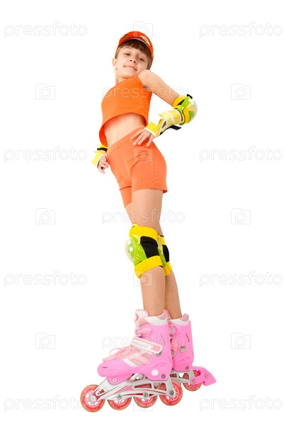 Девочка на роликах на белом фоне