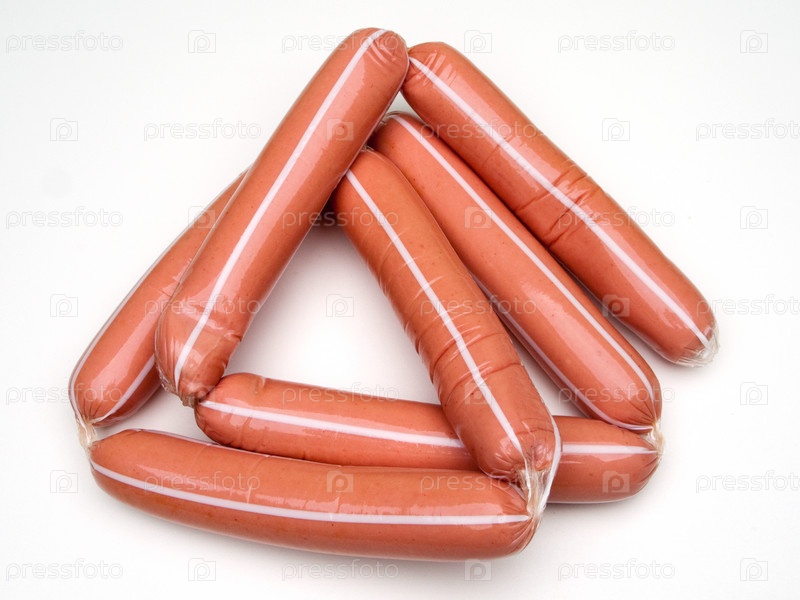 Сосиски в оболочке на белом фоне
