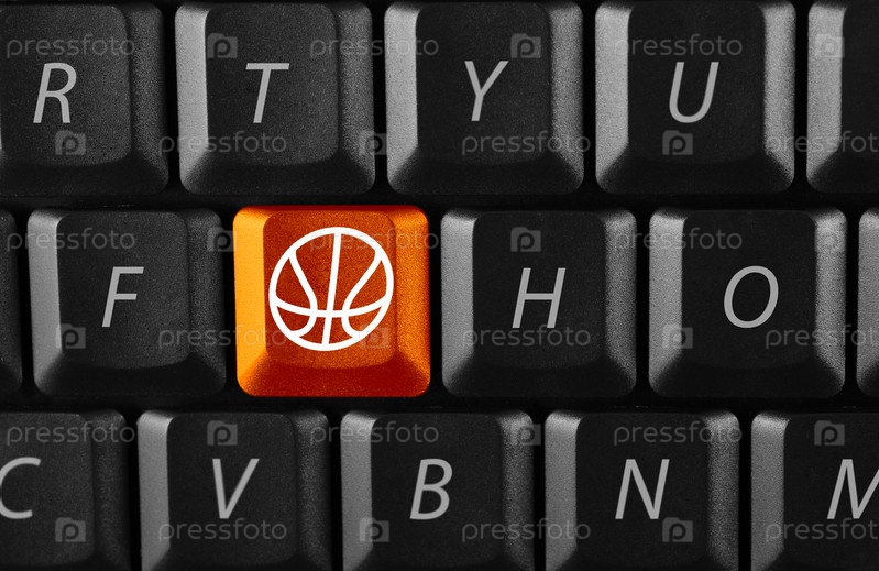Компьютерная клавиатура с красной клавишей с изображением баскетбольного мяча