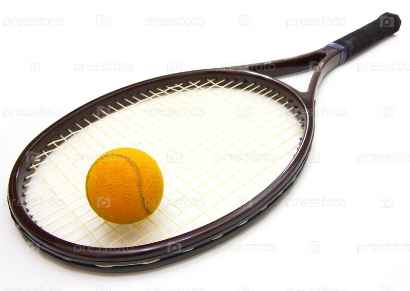 Теннисный мяч на ракетке