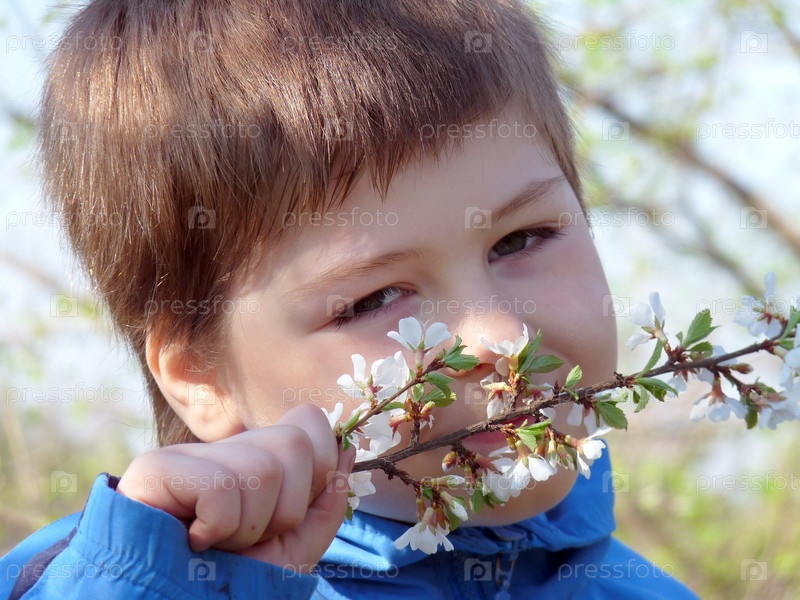 Мальчик с цветущей веточкой в руке