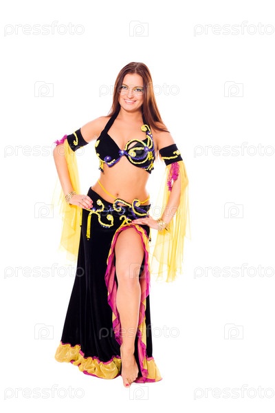 Красивая молодая женщина исполняет танец живота