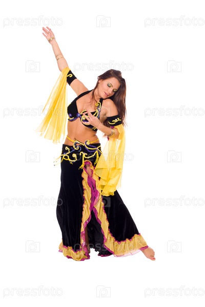 Красивая молодая женщина исполняет танец живота