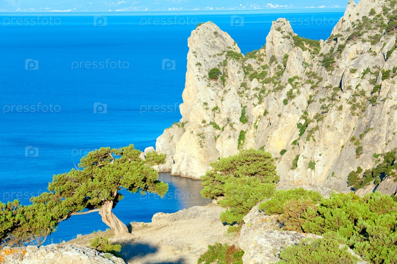 Прибрежные горы заповедника Новый Свет с хвойными деревьями