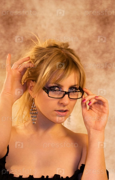 Портрет гламурной модницы на абстрактном фоне в студии