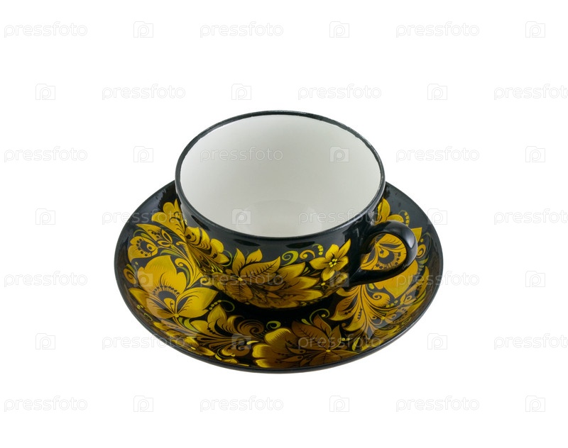 Чашка и блюдце, расписанные под хохлому