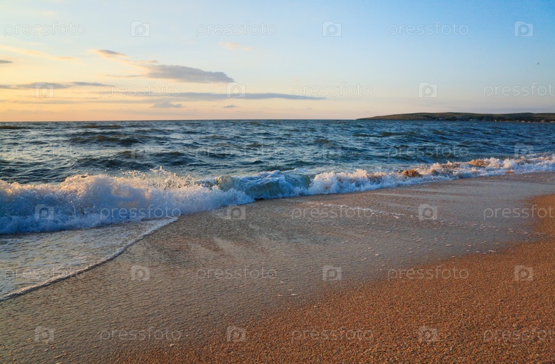 Морской песчаный пляж на фоне заката