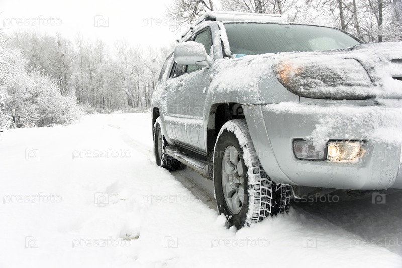 Внедорожник в зимнем лесу