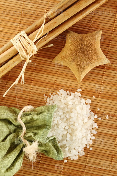 Натюрморт с морской солью, звездой и бамбуковыми палочками
