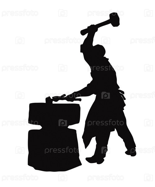 Силуэт кузнеца с молотом в руках на белом фоне
