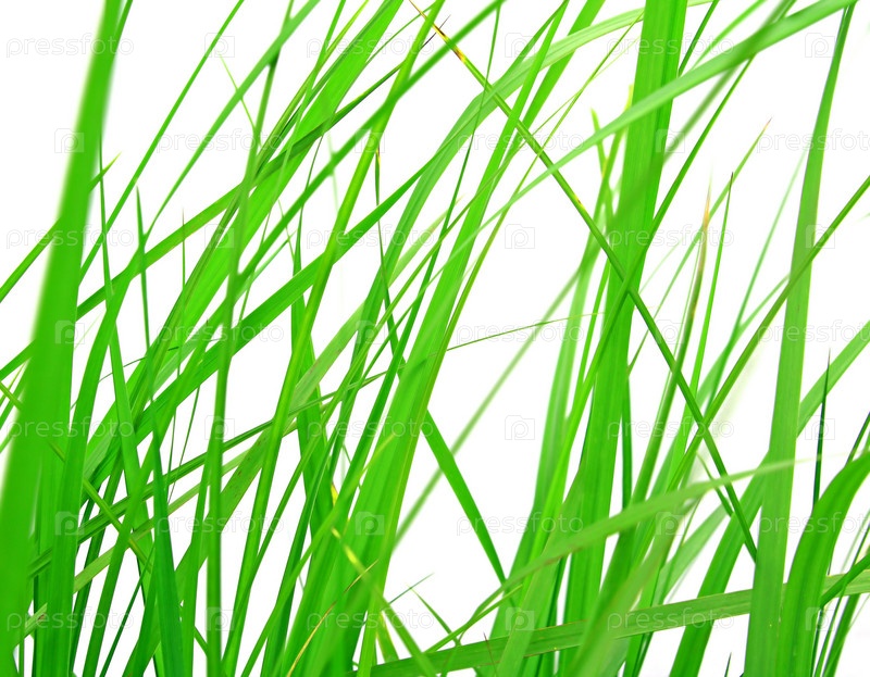 Растущая зеленая трава на белом фоне
