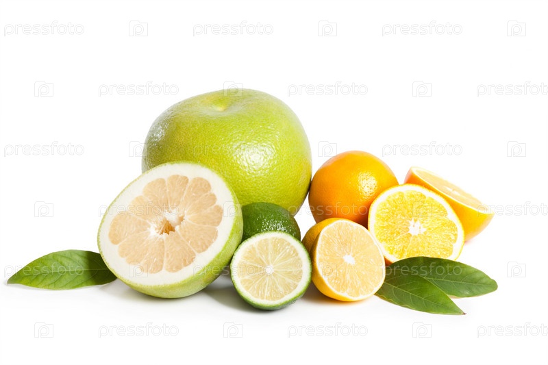 Апельсины и грейпфруты, изолированные на белом фоне