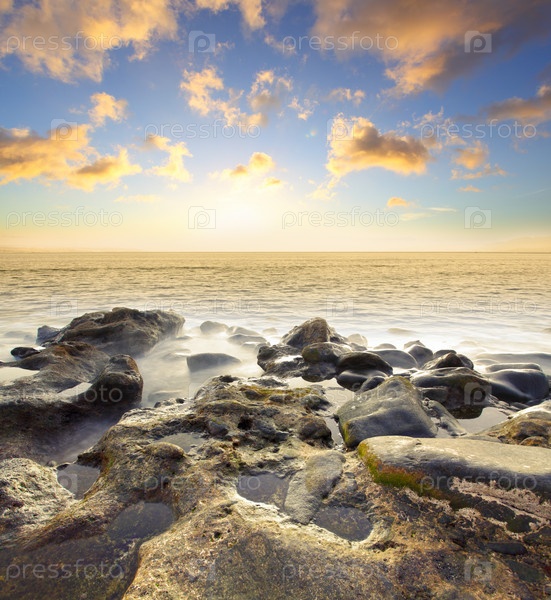 Закат на каменистом пляже